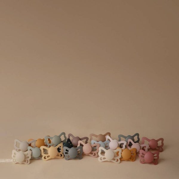 Butterfly heeft een anatomisch siliconen fopspeentutje die de vorm van de mond weerspiegelt. De fopspeen is ontworpen om minder druk op het gehemelte, tandvlees en de kaken uit te oefenen en is het zachtste type fopspeen. Dit verkleint de kans op scheve tanden en een scheve beet. Het orthodontische ontwerp is perfect om de juiste ontwikkeling van de tanden, de kaak en het gehemelte van de baby te ondersteunen.