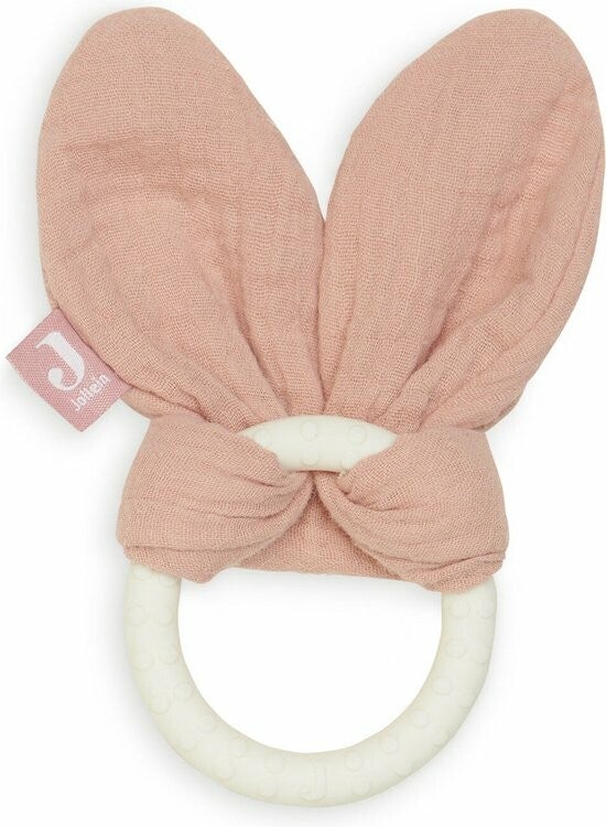 Deze bijtring kan je baby lekker in zijn mond stoppen om er op te sabbelen en te bijten. Bij doorkomende tandjes kan het extra fijn zijn om de bijtring voor gebruik in de koelkast te leggen (nóóit in de vriezer). De koude bijtring verdooft het vervelende gevoel op het tandvlees een beetje. Deze bijtring met oortjes van hydrofiel is verkrijgbaar in vier verschillende kleurtjes. Nougat, chestnut, roze en grijs. Voor je baby is elke vorm makkelijk te grijpen en vast te houden. Doorkomende tandjes kunnen er voor zorgen dat je baby zich minder lekker voelt. Ook niet zo gek natuurlijk: de tand wurmt zich een weg door het tandvlees en dat doet zeer of het geeft jeuk. Vaak zie je het ook wel in het mondje: een harde bobbel en rood of gezwollen tandvlees. Het is hard werken voor jouw baby! Om de pijn iets te verzachten is het voor jouw kleintje fijn om ergens op te bijten. Dat verlicht de druk op het tandvlees bij de doorkomende tandjes. Deze bijtring van natuurlijk rubber kun je gebruiken bij alle leeftijden en is veilig voor jouw baby vanaf 0 maanden.