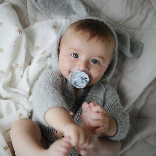 De FRIGG-fopspenenlijn van natuurrubber is zorgvuldig ontworpen voor het comfort van uw baby.