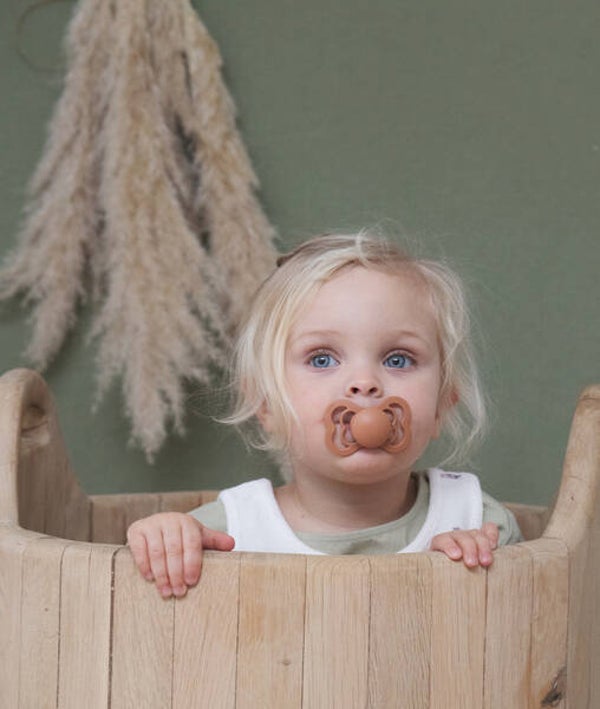 Deze Supreme BIBS fopspeen in latex heeft een vlindervormig schildje. De vorm van het speentje zelf is fysiologisch, en is een platter dan de klassieke BIBS-spenen. Fijn voor kindjes met doorkomende tandjes of als ze platte spenen gewent zijn.