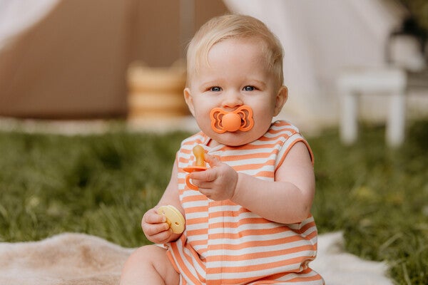 De siliconen variant heeft dezelfde vorm als de rubberen variant, daarom zal je ze kunnen mixen en kijken wat je kindje fijner vindt.