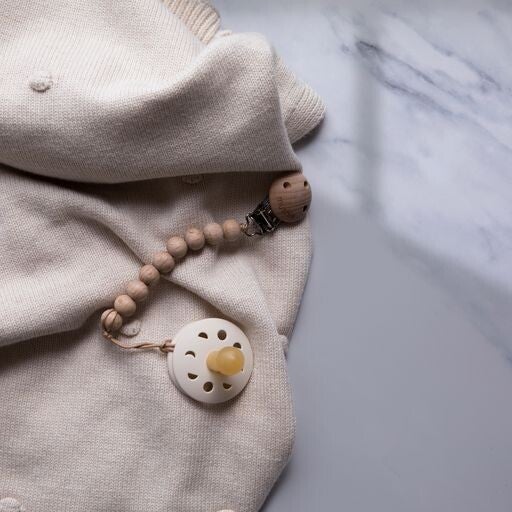 De FRIGG-fopspenenlijn van natuurrubber is zorgvuldig ontworpen voor het comfort van uw baby.