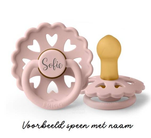 De FRIGG Fairytale natuurrubber spenen zijn verkrijgbaar in 2 maten: