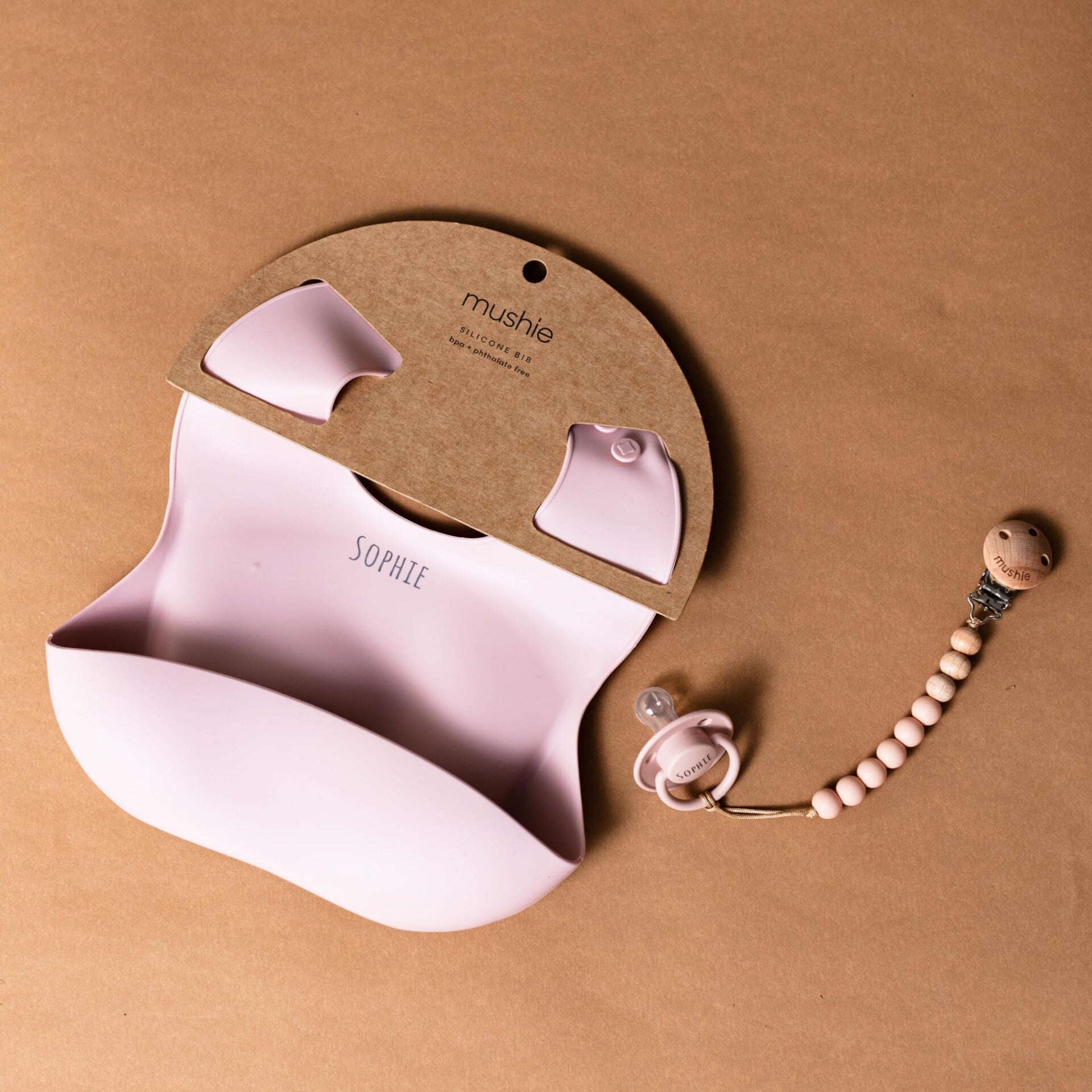 Mushie Siliconen Baby Slabbetje | Met Naam | Blush